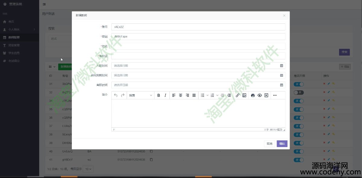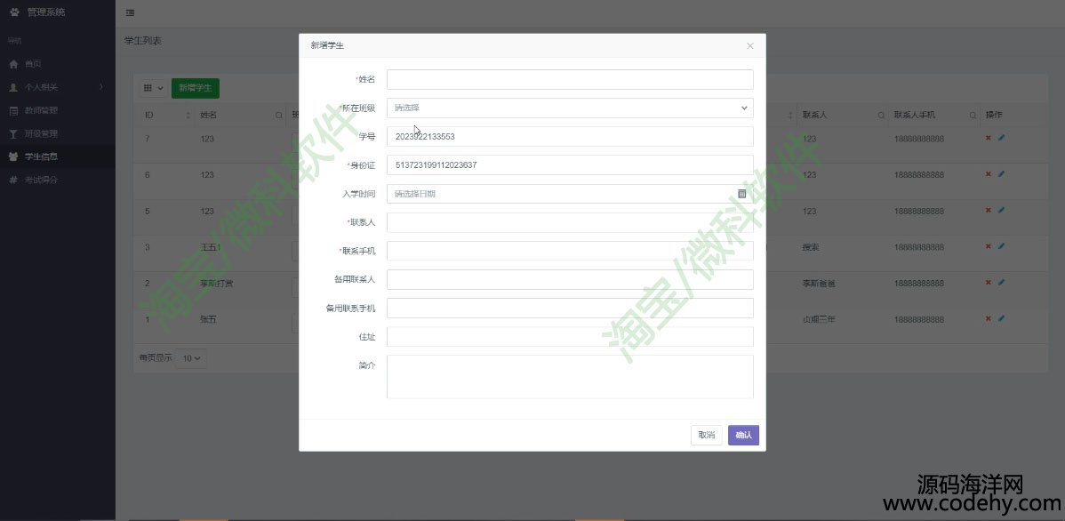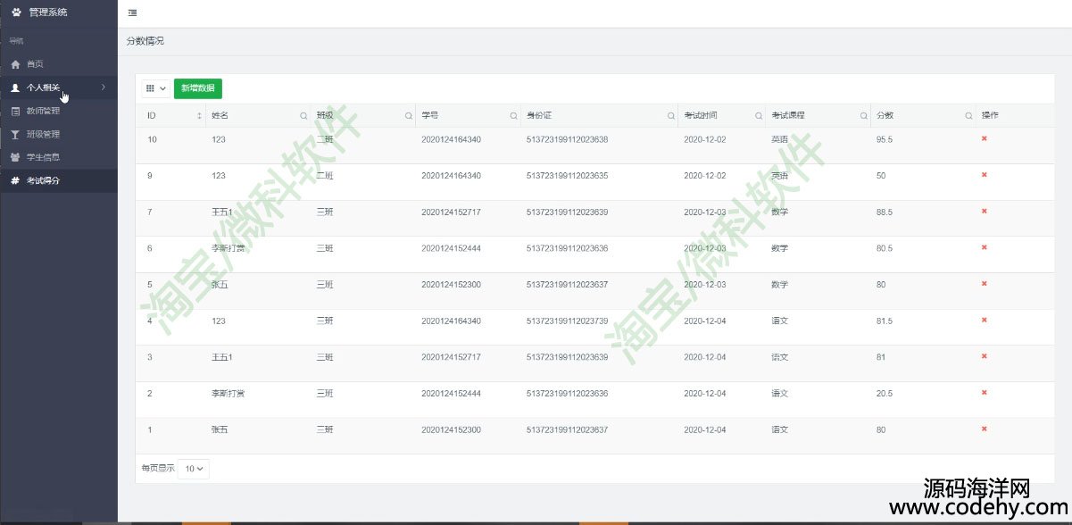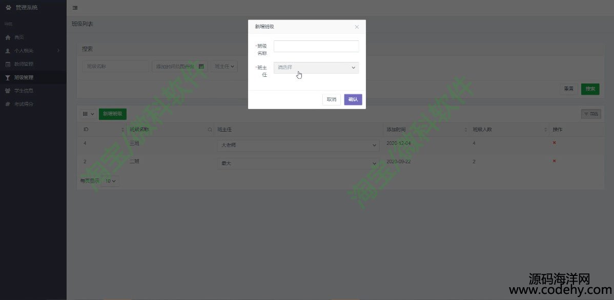 登錄用戶管理教師管理班級管理學生管理考試得分