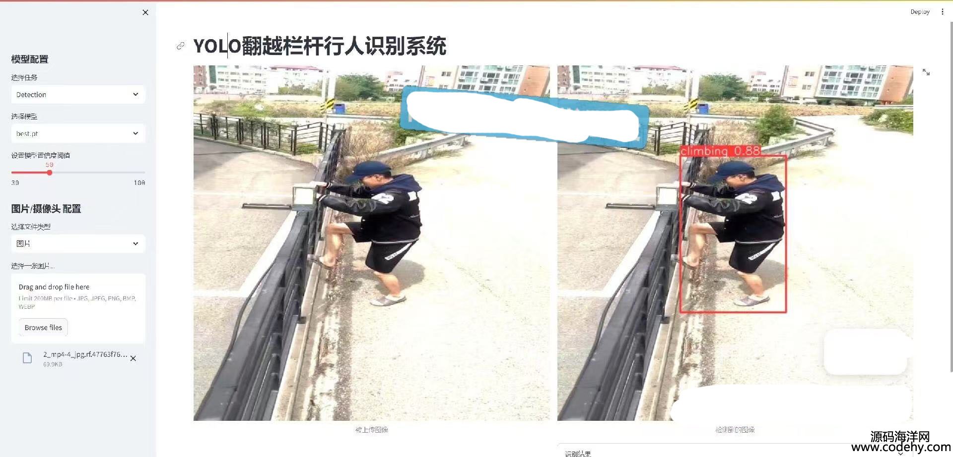 YOLO翻越欄桿行為識別 數據集 模型 界面