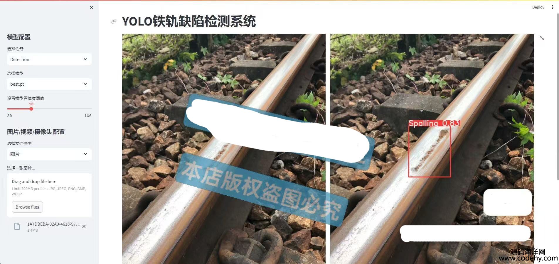 YOLO鐵軌缺陷檢測 數據集 模型 界面