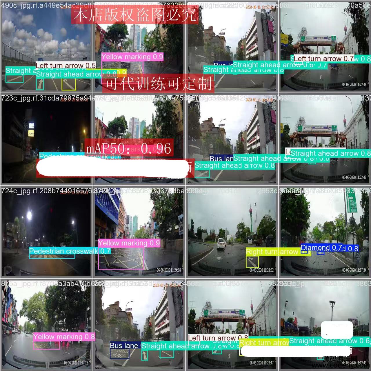 7864-車道線路面標識檢測YOLO數據集模型2584張 11類