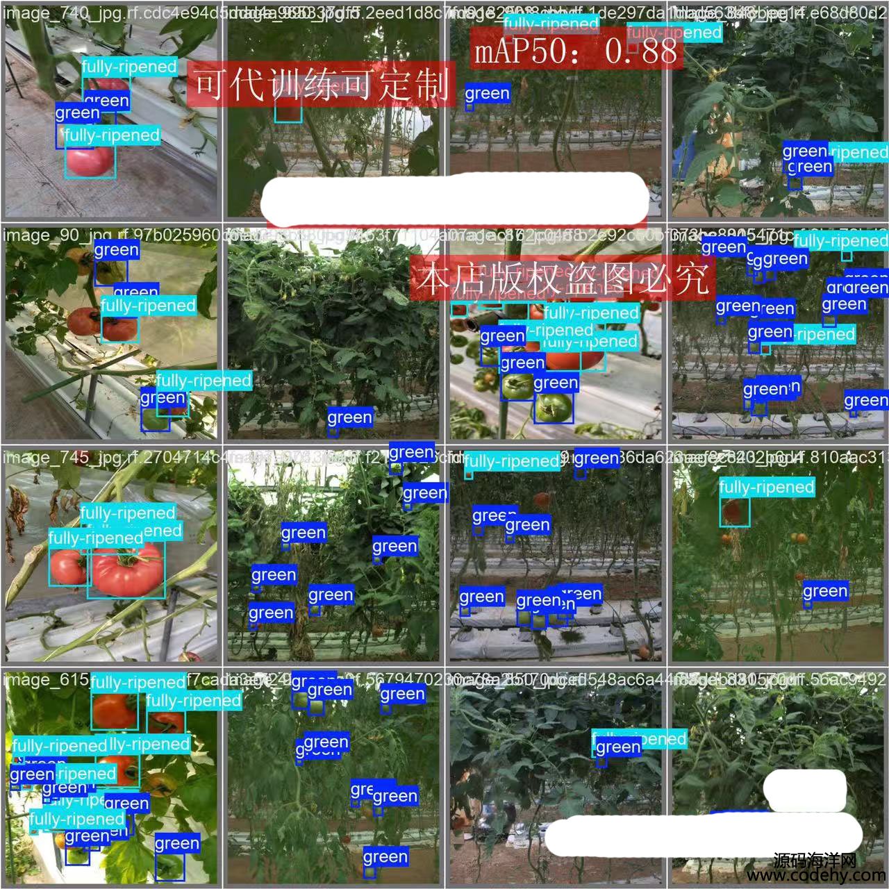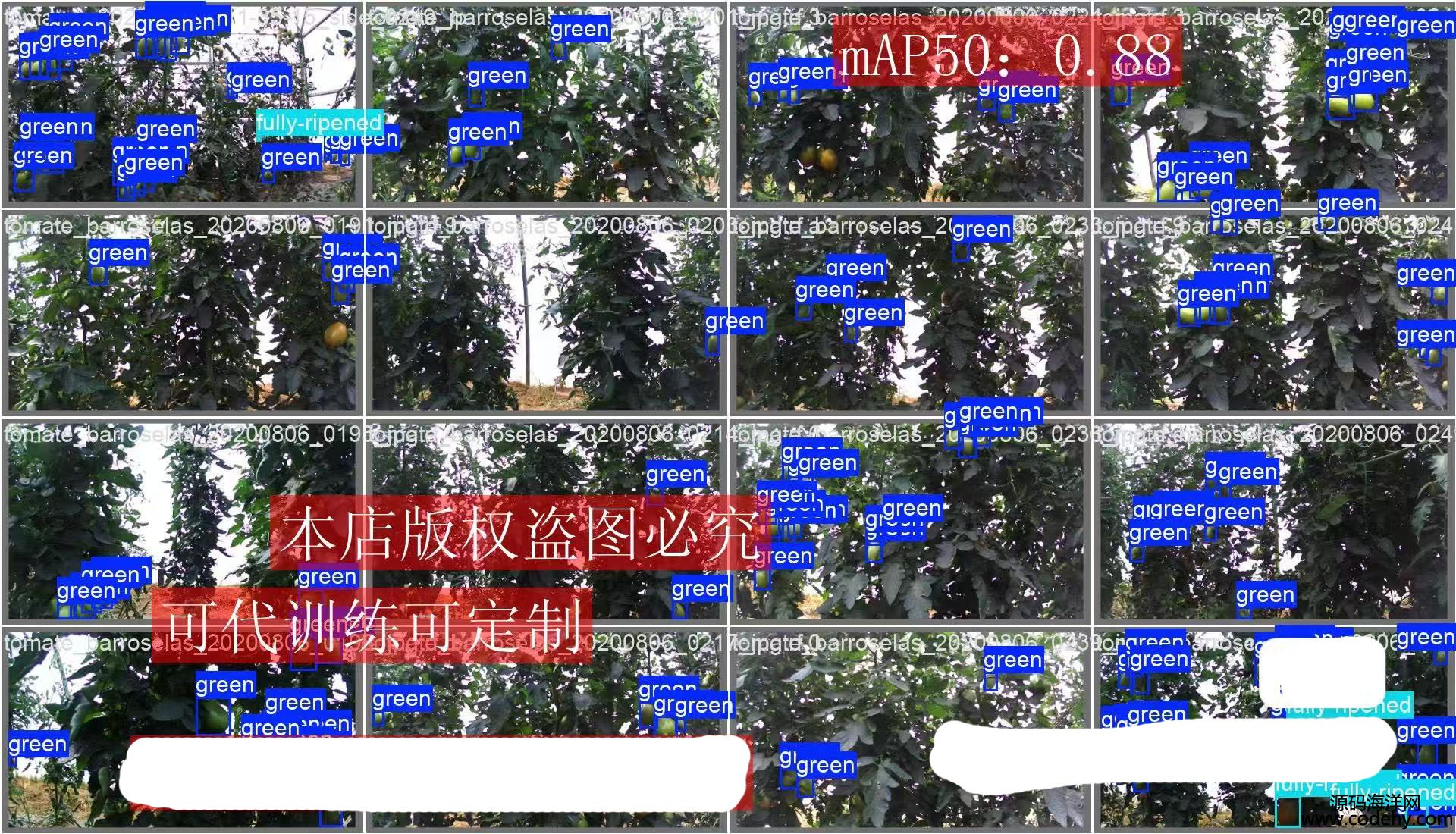 【番茄成熟度檢測YOLO數據集】共【1523】張,按照8比2劃分為訓練集和驗證集,其中訓練集【1218】張,驗證集【305】張,模型分為【3】類,分類為:【'green', 'fully-ripened', 'half-ripened'】
