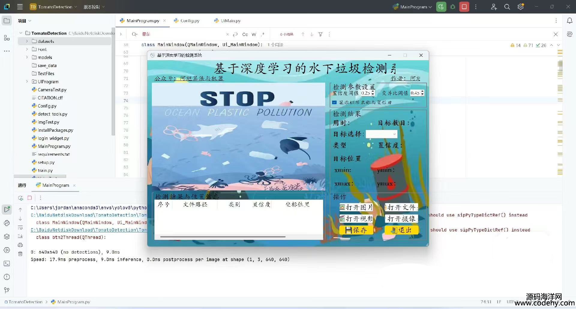 7955-基于YOLOv8+pyqt5的水下垃圾檢測系統(tǒng) 源碼 源代碼