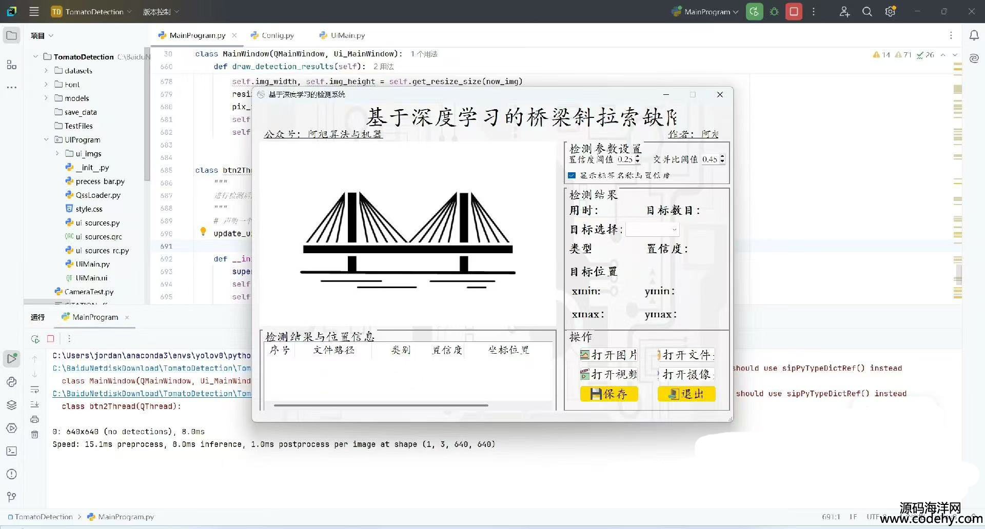 基于YOLOv8+pyqt5的橋梁斜拉索缺陷檢測系統 源碼 源代碼