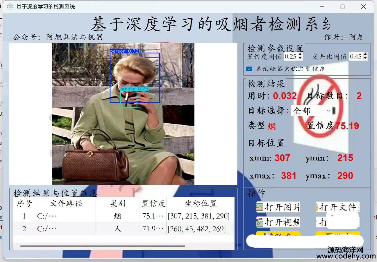 基于YOLOv8+pyqt5的吸煙者檢測系統 源碼 源代碼