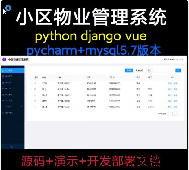 8191-python+django+vue開發的小區物業管理系統前后臺python,帶部署文檔
