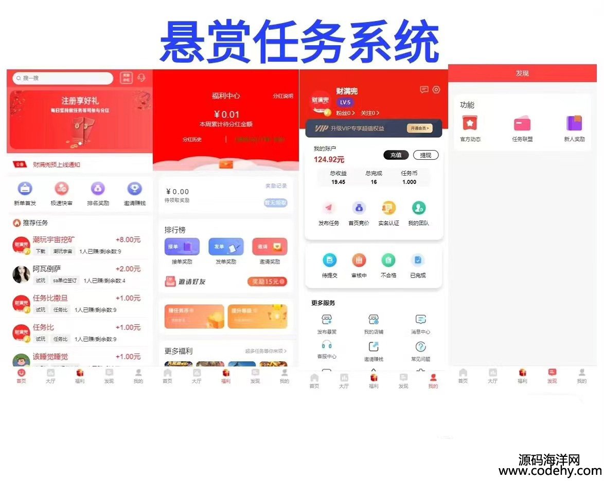 全新精美UI+用戶分紅+游戲試玩+任務聯盟+在線聊天+首頁競價+任務付費置頂+任務付費刷新+任務付費刷新+提現手續費+會員提現手續費+發布任務手續費+會員發布任務手續費+會員任務加成..等各種功能