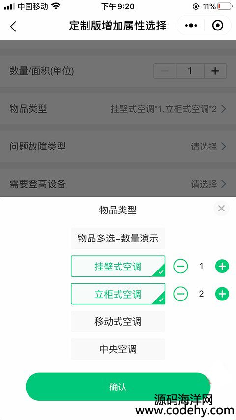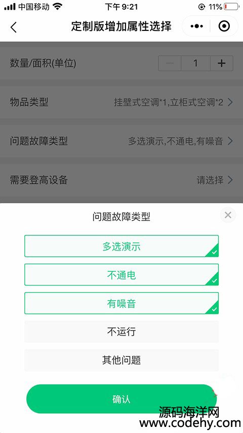私家定制版本:2000元 增加發(fā)布需求時(shí)物品及數(shù)量選擇、多選、單選等選項(xiàng)(后臺(tái)可自定義選項(xiàng)內(nèi)容)